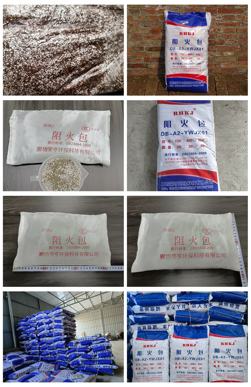 防火包(阻火包)具有不燃性,耐火時限可達(dá)4小時以上,在較高溫度下膨脹和凝固。形成一種隔熱、隔煙的密封,且防火抗潮性好,不含石棉等有毒物成份。